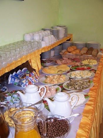 Przy przygotowaniu wyśmienitych posiłków uwzględniamy indywidualność naszych gości proponując śniadania w formie bufetu oraz obiady lub obiadokolacje jako ciepły posiłek z trzech dań. Posiłki serwujemy w stylowo urządzonej jadalni lub na tarasie.