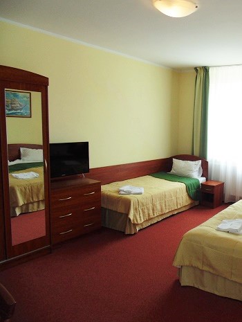 Na naszych gości czeka 25 pokoi: jedno-, dwu- oraz trzyosobowe oraz pokoje rodzinne typu studio tzn. dwa pokoje dwuosobowe połączone drzwiami w ścianie działowej. Wszystkie pokoje mają wysoki standard i posiadają balkon, łazienkę z prysznicem, SAT-TV, radio, stolik, czajnik oraz sprzęt plażowy.